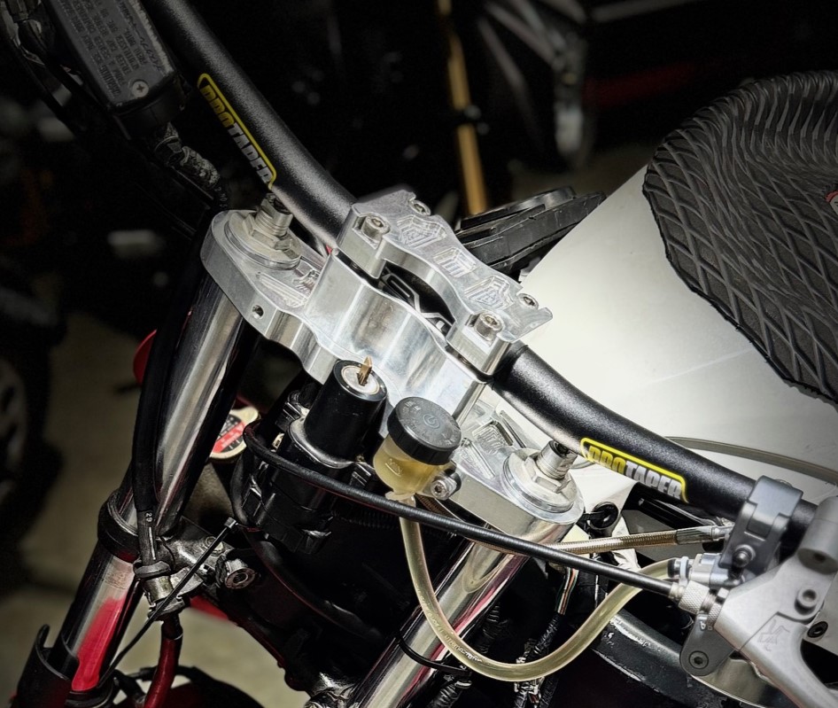 The OEM triple clamp was never designed for dirt bar conversions, repeated impacts, or aggressive stunt riding. Flex in the stock unit and limited mounting options can negatively affect control and rider confidence.
