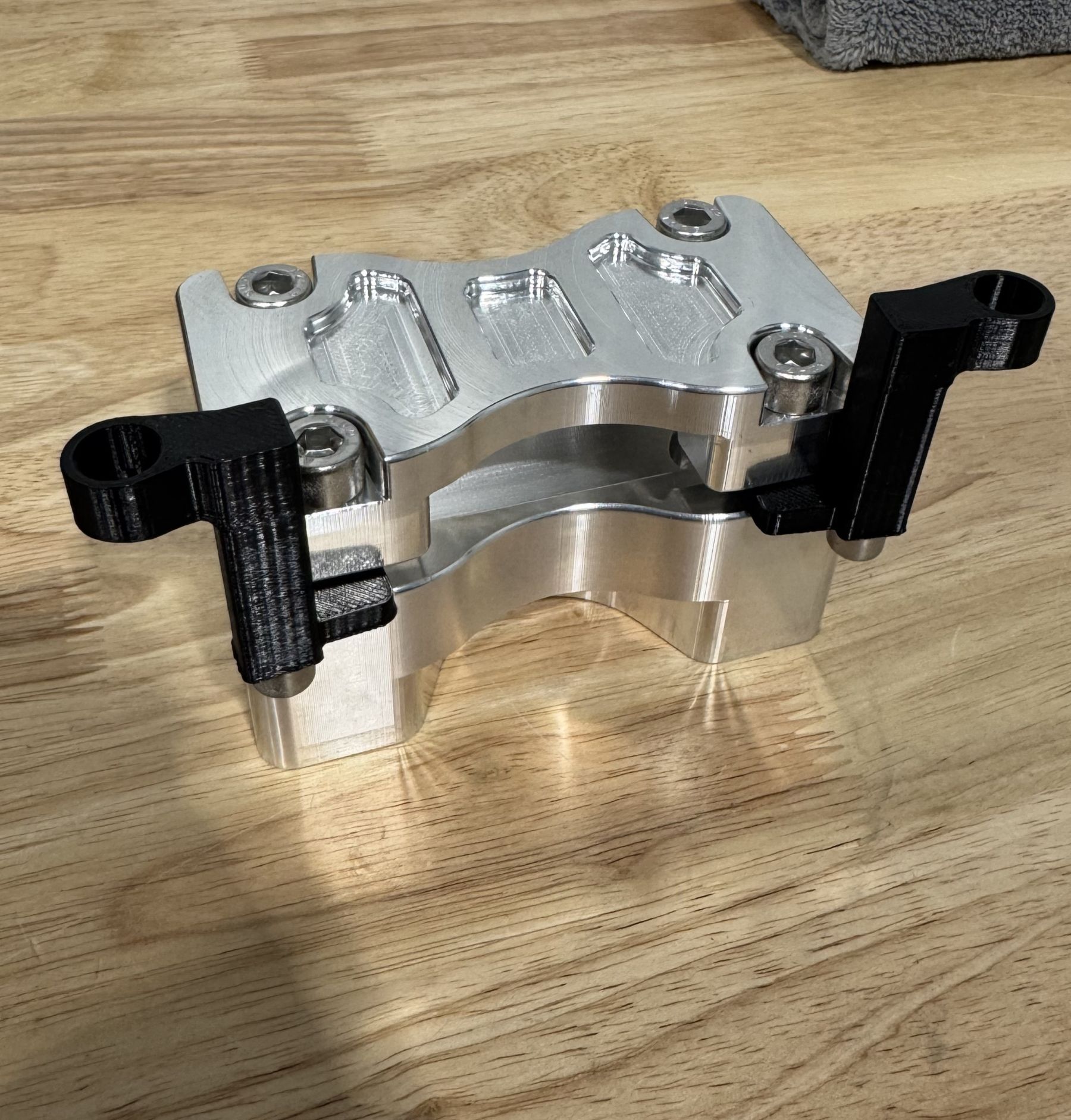 CNC-machined billet triple tree for Yamaha MT-07 and FZ-07. Retains the factory ignition mount, fits 1-1/8” fat bars, and supports dual 15cc fluid reservoirs for a clean, functional cockpit setup.